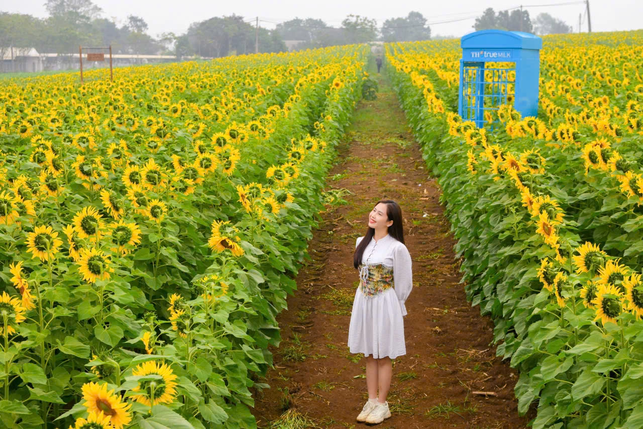 Đại diện TH cho biết năm nay đơn vị trồng khoảng 50 ha hoa hướng dương, chia thành ba đợt gieo gối nhau. Du khách có thể tham quan, chụp ảnh từ thời điểm này đến Tết Âm lịch.