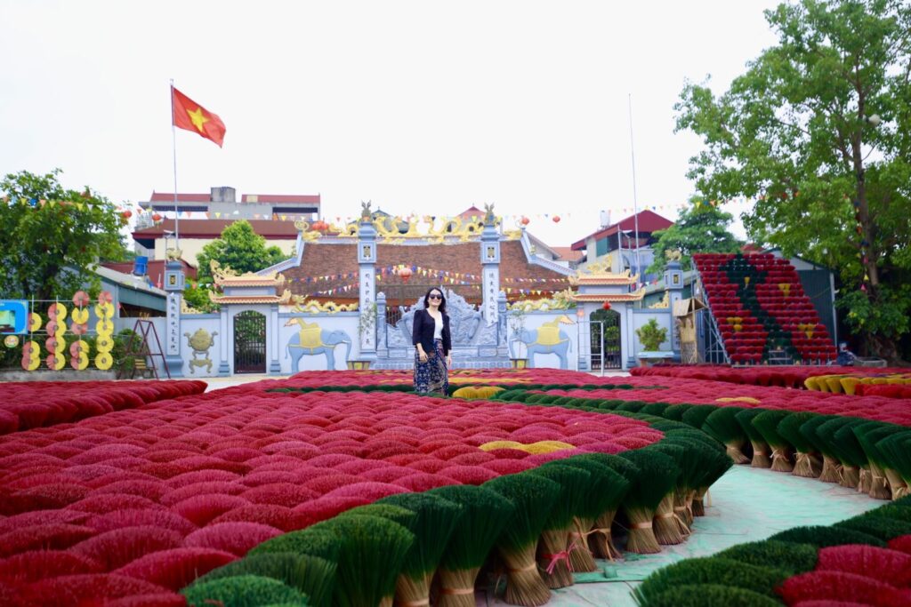 Là chủ một cơ sở sản xuất hương sạch, anh Thiệu Văn Ước cho biết: “Bên cạnh màu đỏ, màu vàng đơn thuần, tôi đã tìm hiểu và sử dụng hoa đậu biếc, bột lá cây… để giúp chân hương có được nhiều màu sắc nổi bật, tươi mới”. Ngoài ra, anh Thiệu Văn Ước còn mua thêm nhiều đèn lồng và dùng chính sản phẩm của làng nghề để trang trí cho cơ sở sản xuất hương thêm ấn tượng.